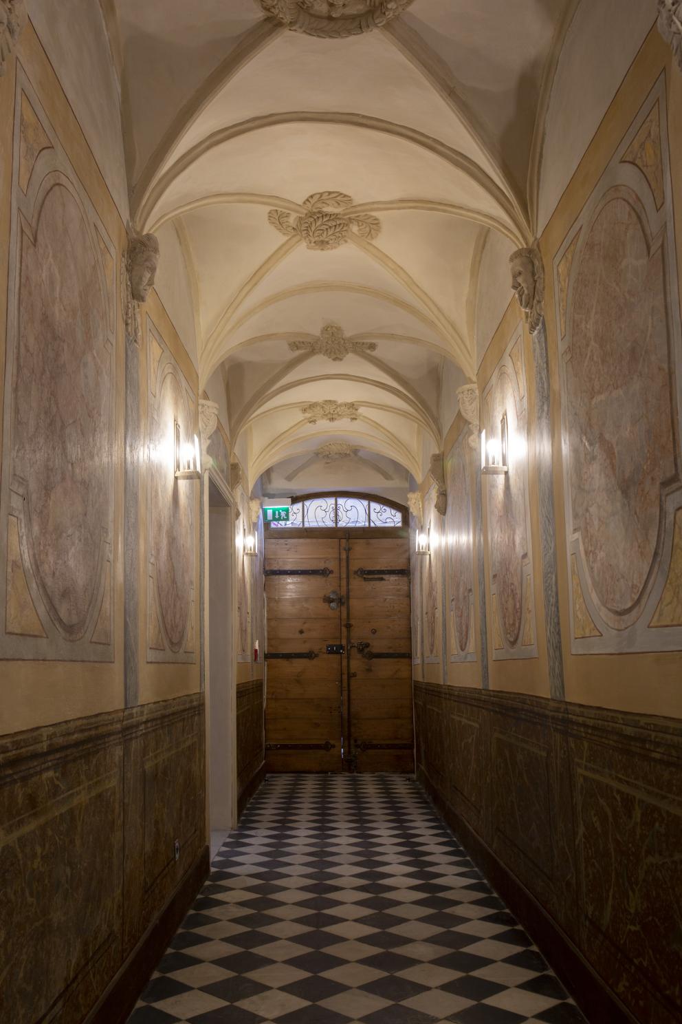 L’architecture est particulièrement atypique d’une part par son plan traversant et contraint, et ses décors en plâtre d’une extrême richesse et d’autre part par son puits de lumière quadrangulaire diffusant une douce lumière jusqu’au rez-de-chaussée.